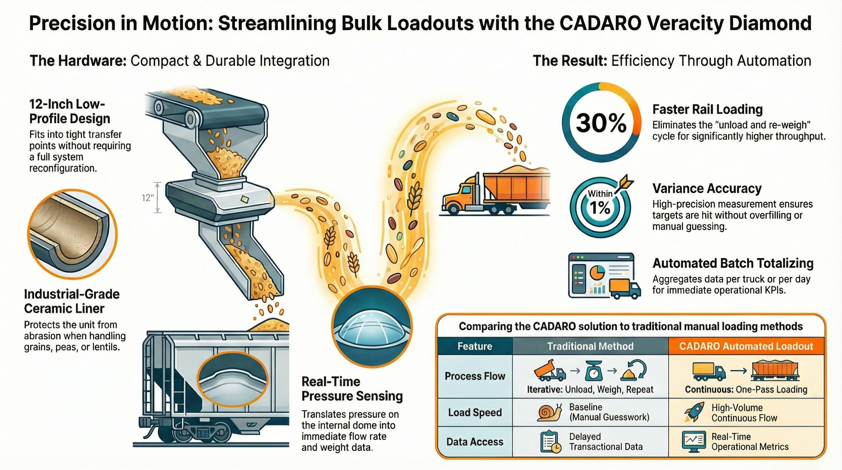 CADARO is dismantling this status quo, moving beyond the era of industrial guesstimation. The new VERACITY Diamond series provides a level of visibility previously thought impossible in high-flow environments. It is a strategic shift from simply moving material to managing every pound with surgical precision.
